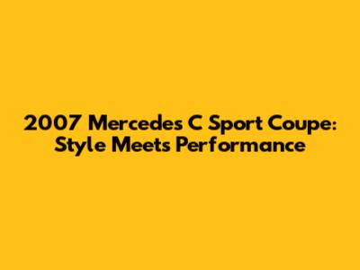 2007 Mercedes C Sport Coupe: Style Meets Performance