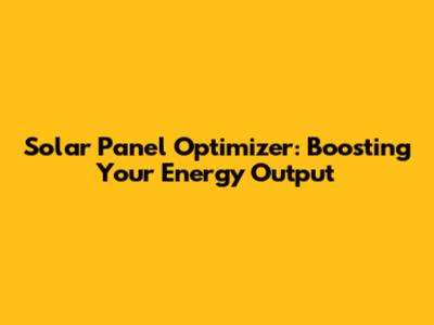 Solar Panel Optimizer: Boosting Your Energy Output