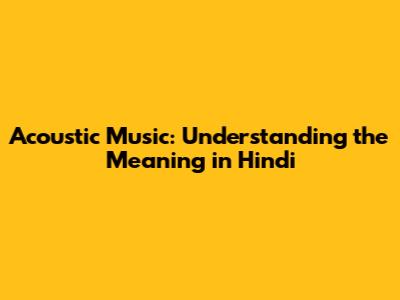 Acoustic Music: Understanding The Meaning In Hindi