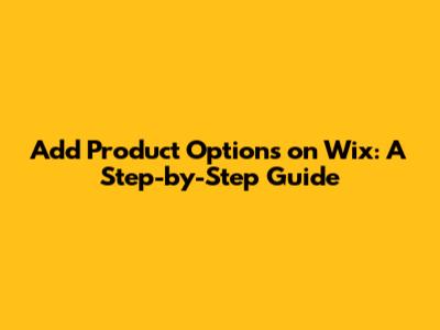 Add Product Options On Wix: A Step-by-Step Guide