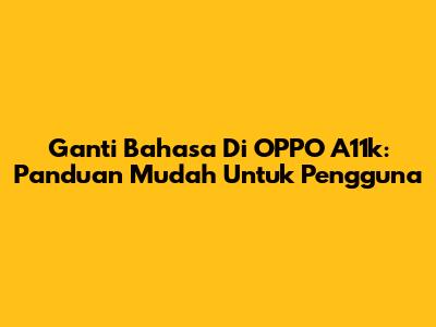 Ganti Bahasa Di OPPO A11k: Panduan Mudah Untuk Pengguna