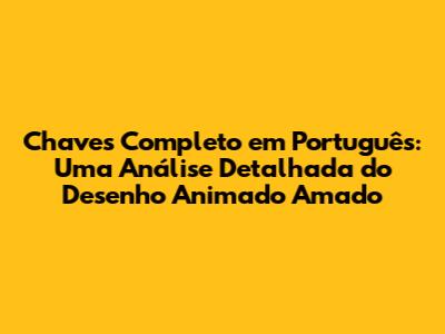 Chaves Completo Em Português: Um Mergulho No Desenho Animado