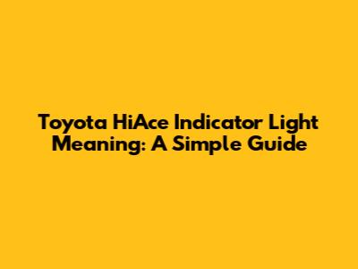 Toyota HiAce Indicator Light Meaning: A Simple Guide
