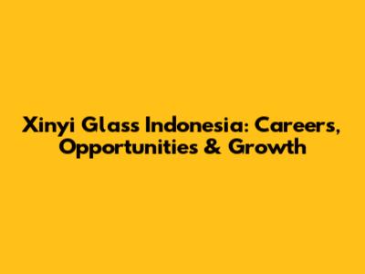 Xinyi Glass Indonesia: Careers, Opportunities & Growth