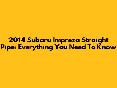2014 Subaru Impreza Straight Pipe: Everything You Need To Know
