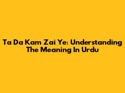 Ta Da Kam Zai Ye: Understanding The Meaning In Urdu