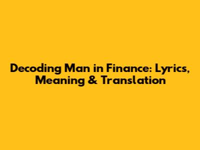 Decoding 'Man In Finance': Lyrics, Meaning & Translation
