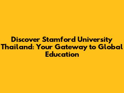 Discover Stamford University Thailand: Your Gateway To Global Education