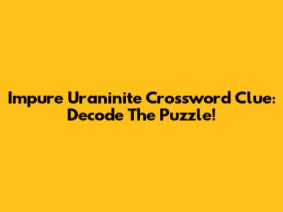 Impure Uraninite Crossword Clue: Decode The Puzzle!