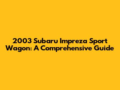 2003 Subaru Impreza Sport Wagon: A Comprehensive Guide