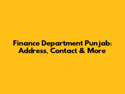 Finance Department Punjab: Address, Contact & More