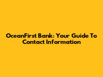 OceanFirst Bank: Your Guide To Contact Information