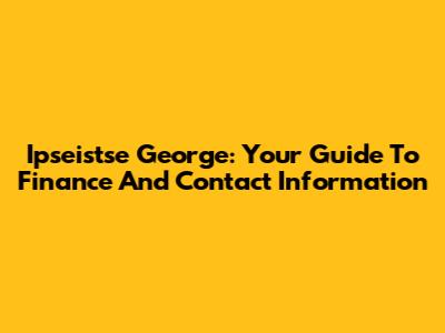 Ipseistse George: Your Guide To Finance And Contact Information