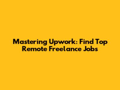 Mastering Upwork: Find Top Remote Freelance Jobs