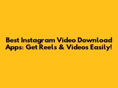 Best Instagram Video Download Apps: Get Reels & Videos Easily!