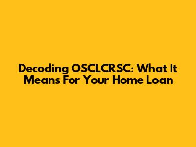 Decoding OSCLCRSC: What It Means For Your Home Loan