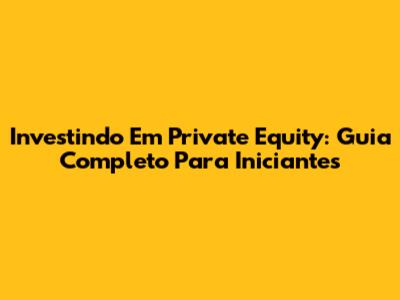 Investindo Em Private Equity: Guia Completo Para Iniciantes