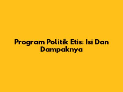 Program Politik Etis: Isi Dan Dampaknya