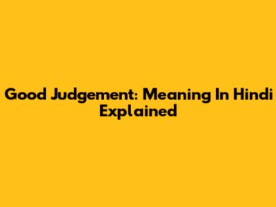 Good Judgement: Meaning In Hindi Explained