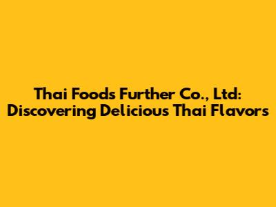 Thai Foods Further Co., Ltd: Discovering Delicious Thai Flavors