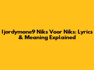 Ijordymone9 Niks Voor Niks: Lyrics & Meaning Explained