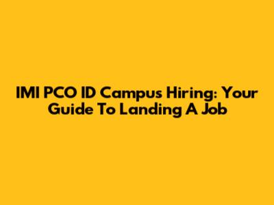 IMI PCO ID Campus Hiring: Your Guide To Landing A Job