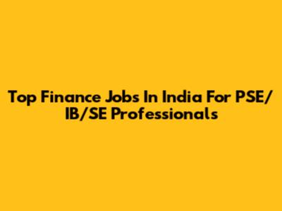 Top Finance Jobs In India For PSE/IB/SE Professionals