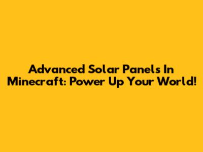 Advanced Solar Panels In Minecraft: Power Up Your World!