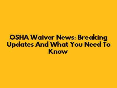 OSHA Waiver News: Breaking Updates And What You Need To Know