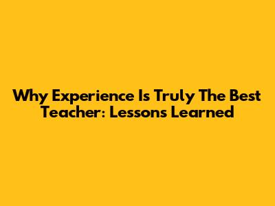 Why Experience Is Truly The Best Teacher: Lessons Learned