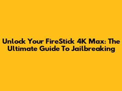 Unlock Your FireStick 4K Max: The Ultimate Guide To Jailbreaking