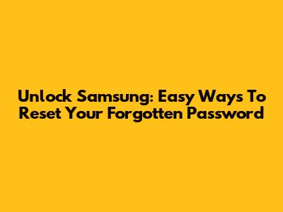 Unlock Samsung: Easy Ways To Reset Your Forgotten Password
