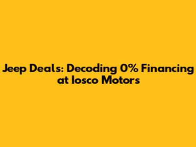 Okay, so you're eyeing a Jeep at Iosco Motors and hoping to snag that 0% financing deal. Finding these deals requires a bit of detective work, but it's totally doable. First off, head straight to the Iosco Motors website. Most dealerships prominently display their current promotions right on their homepage or in a dedicated 'Specials' or 'Deals' section. Look for banners or listings that specifically mention 0% APR or low-interest financing options on Jeeps. If you don't see anything immediately, dig a little deeper. Check out the individual model pages for the Jeeps you're interested in, like the Wrangler, Grand Cherokee, or Gladiator. Sometimes, specific financing offers are tied to particular models or trim levels. Another great way to stay in the loop is to sign up for Iosco Motors' email newsletter. Dealerships often announce exclusive promotions and early bird deals to their email subscribers, giving you a heads-up on potential 0% financing opportunities before they're widely advertised. Don't hesitate to pick up the phone and call Iosco Motors directly. Talking to a sales representative can give you real-time information about current financing deals and any upcoming promotions. They can also answer specific questions about eligibility requirements and loan terms. Be sure to ask about any model-year-end clearance events or holiday sales, as these are prime times for manufacturers to roll out attractive financing offers. When you visit the dealership in person, keep an eye out for promotional signage and ask the sales team about current financing options. They should be able to provide you with detailed information and help you determine if you qualify for 0% financing. Also, remember to check the official Jeep website. Manufacturers like Jeep often advertise national financing deals that are available at participating dealerships like Iosco Motors. By cross-referencing the information on the Jeep website with the deals offered at Iosco Motors, you can ensure you're getting the best possible offer. Happy hunting, and may the 0% APR be with you!