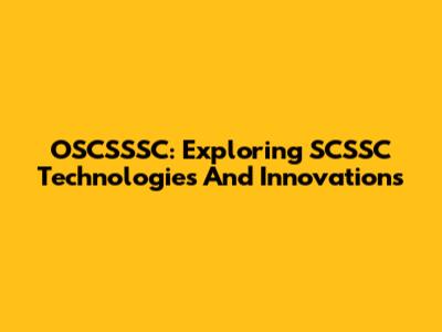 OSCSSSC: Exploring SCSSC Technologies And Innovations