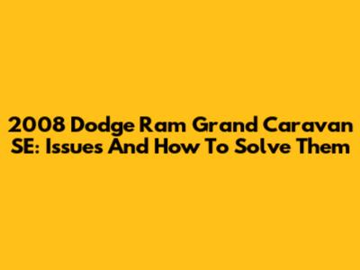 2008 Dodge Ram Grand Caravan SE: Issues And How To Solve Them