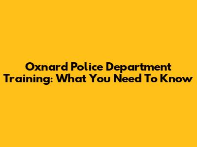 Oxnard Police Department Training: What You Need To Know