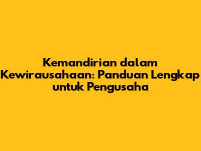 Kemandirian Dalam Kewirausahaan: Panduan Lengkap Untuk Pengusaha