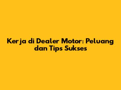 Kerja di dealer motor menawarkan berbagai peluang menarik bagi mereka yang memiliki minat di bidang otomotif, penjualan, dan pelayanan pelanggan. Dengan berbagai posisi yang tersedia, kualifikasi yang dibutuhkan, tips untuk sukses, serta gambaran mengenai lingkungan kerja dan prospek karir, artikel ini diharapkan dapat memberikan informasi yang bermanfaat bagi Anda yang tertarik untuk bekerja di dealer motor. Jadi, guys, jangan ragu untuk mengejar karir impian Anda di dunia otomotif yang menarik ini!