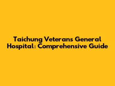 Taichung Veterans General Hospital: Comprehensive Guide