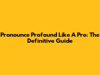Pronounce Profound Like A Pro: The Definitive Guide