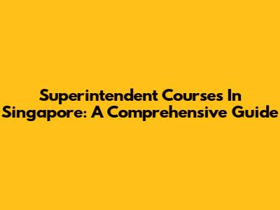 Superintendent Courses In Singapore: A Comprehensive Guide
