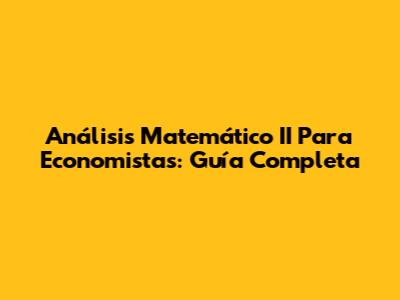 Análisis Matemático II Para Economistas: Guía Completa