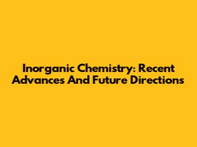 Inorganic Chemistry: Recent Advances And Future Directions