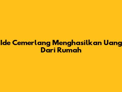Ide Cemerlang Menghasilkan Uang Dari Rumah