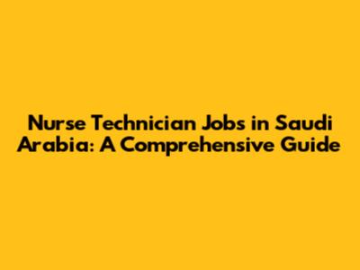 Nurse Technician Jobs In Saudi Arabia: A Comprehensive Guide