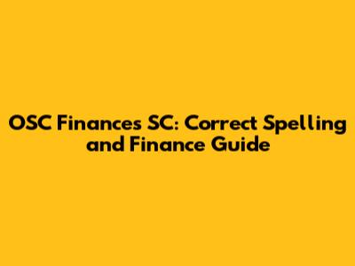 OSC Finances SC: Correct Spelling And Finance Guide