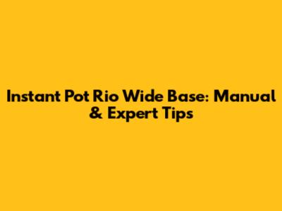Instant Pot Rio Wide Base: Manual & Expert Tips