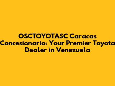 Hey guys! Are you on the hunt for a reliable Toyota in Caracas? Look no further! Let's dive into everything you need to know about OSCTOYOTASC, your go-to Toyota dealership in the heart of Venezuela. Whether you're dreaming of a brand-new ride or need top-notch service for your current Toyota, this dealership has got you covered. Getting a new car is exciting, but can be overwhelming. OSCTOYOTASC makes it easy and fun.