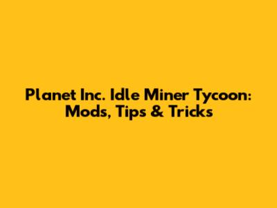Planet Inc. Idle Miner Tycoon: Mods, Tips & Tricks