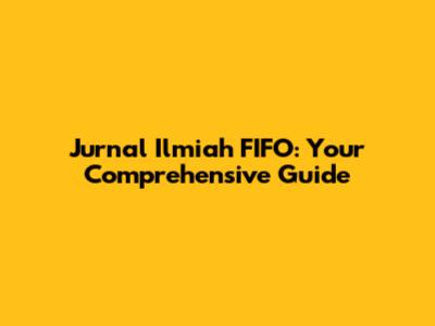 Jurnal Ilmiah FIFO: Your Comprehensive Guide